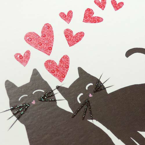 グリーティングカード 【バレンタイン】「黒猫とハート」【封筒サイズ/145×170mm】【封筒の色/赤】【中面/無地】【箔押し加工あり】(S248)